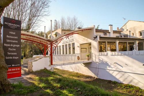 L Hôtel Le Robinson, situé à Beaucaire, offre une expérience de séjour agréable avec ses nombreuses installations. L hôtel dispose d une piscine extérieure ouverte en saison, d un parking privé gratuit, d un jardin et d une terrasse. Sa réception est ouverte 24h/24 pour répondre aux besoins des clients. La proximité de la gare TGV d Avignon, à 29 km, et du parc des expositions de Nîmes, à 30 km, rend cet hôtel pratique pour les voyageurs d affaires ou d agrément.